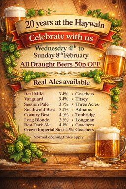 Kevin has been at the Haywain (our 2025 Pub of the Year) for 20 years and is having a celebration from Wednesday 4th February to Sunday 8th February 2026.